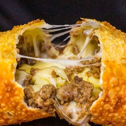 Massa crocante, carne bem temperado e não pode faltar mussarela