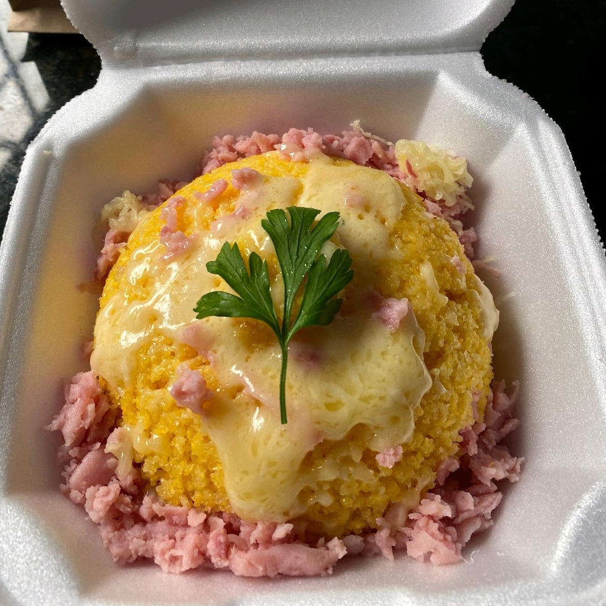 O tradicional cuscuz de presunto e queijo bem recheado