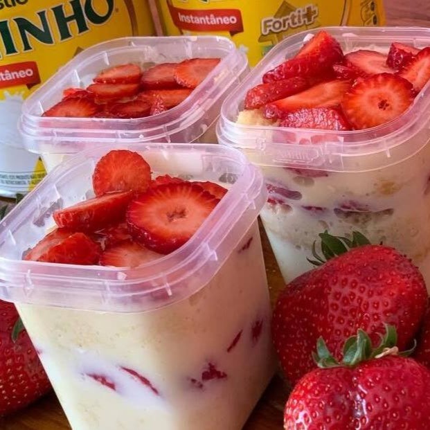 Bolo No Pote Leite Ninho Com Morango. Bolo No Pote
