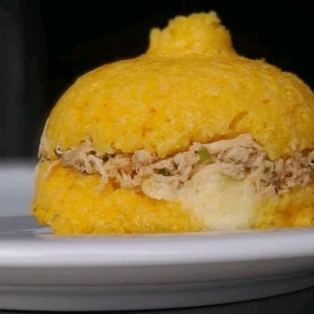 Cuscuz bem preparado recheado com um delicioso frango desfiado, mussarela e requeijão cremos, uma delícia para os amantes de cuscuz