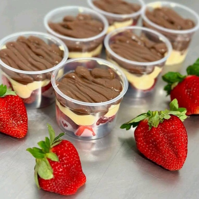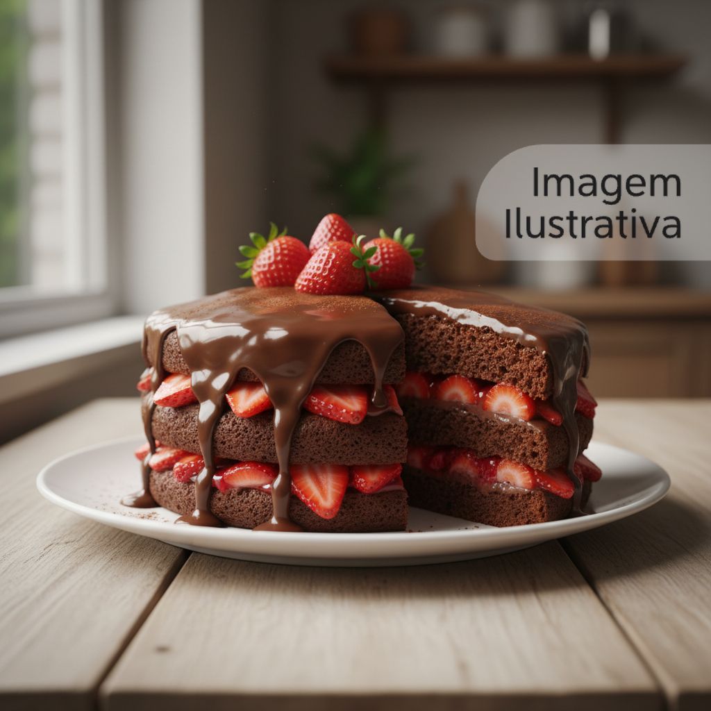 Morangos selecionado, creme de leite ninho mousse de chocolate finalizado com morangos e granulado gourmet. Quantidade médio 1.800 litro serve até 10 pessoas