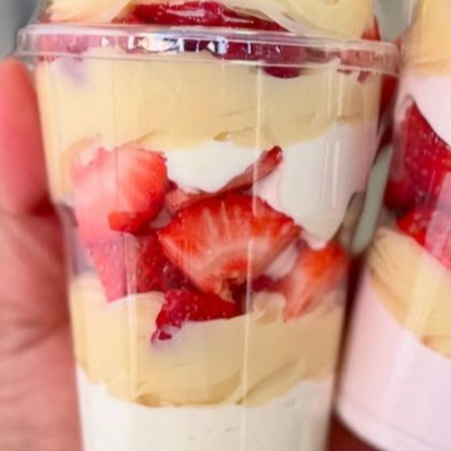 Copo da felicidade Ninho duplo com, morango. morangos selecionado, mousse de ninho creme de ninho finalizado com mousse de ninho e morango, peso médio 250 grama