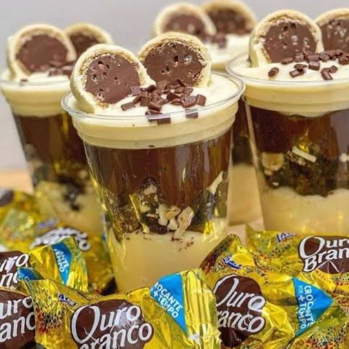 Você tem que experimentar essa delícia, nossa nova sobremesa copo da felicidade de ouro branco Com recheio de leite ninho cremoso e chocolate 50% cacau e com muitos chocolate ouro branco é simplesmente sensacional 😋