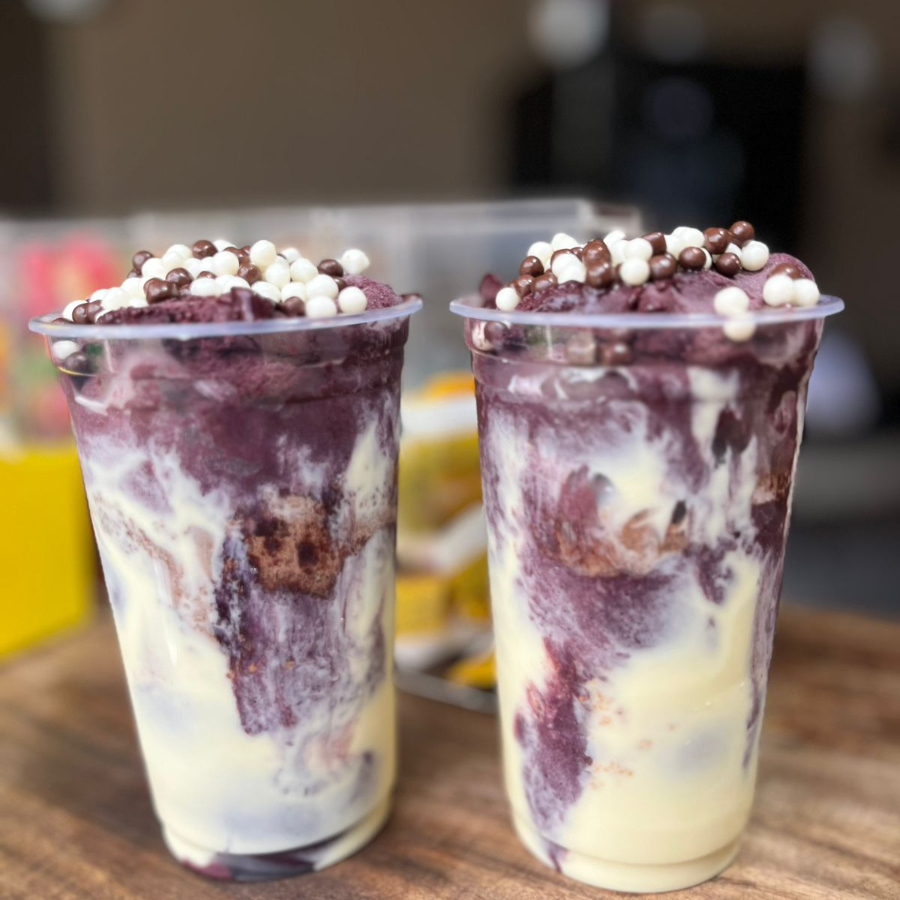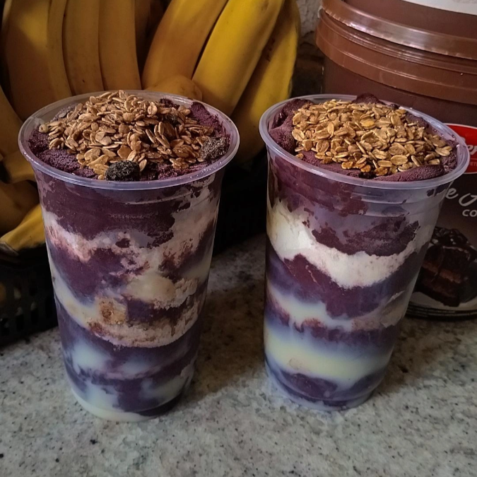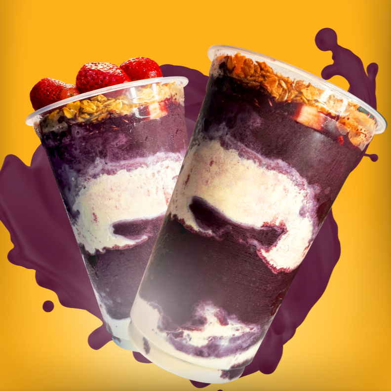 Açaí para dois! Cada um com 4 adicional +1 cobertura favorita.