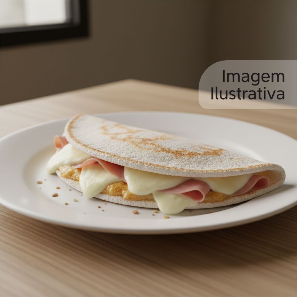 Deliciosa tapioca com recheio de queijo e presunto, perfeita para qualquer hora do dia.