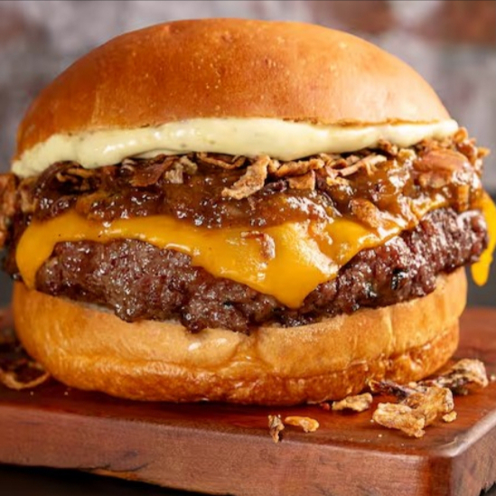 Hambúrguer Smash Duplo 2x100g Com Cheddar Derretido, Bacon Crocante e Molho Especial da Casa Para Uma Explosão de Sabor!