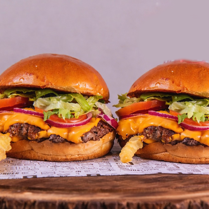 Hambúrguer Smash Duplo 130g com 4 Fatias de Cheddar Cremoso, Alface Crocante, Tomate e Molho Especial da Casa para um Sabor Duplamente Irresistível