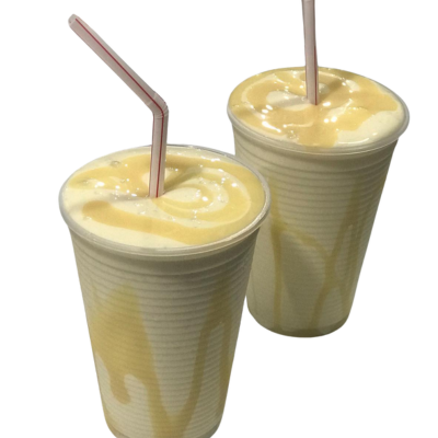 Milkshake Delicioso Capuccino, Borda de Doce de Leite, Calda de Caramelo e Mais Capuccino para um Sabor Intenso e Marcante.