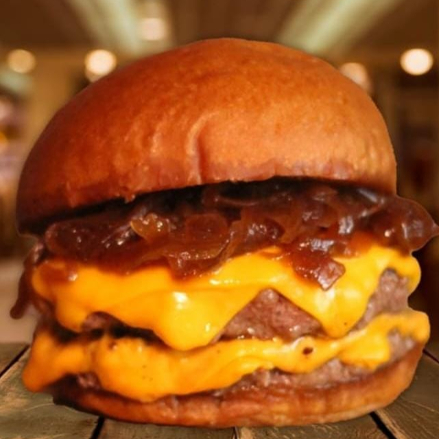 Hambúrguer Duplo 2x 100gr com Cheddar Extra Cremoso e uma Deliciosa Cebola Caramelizada, Molho da Casa!!!