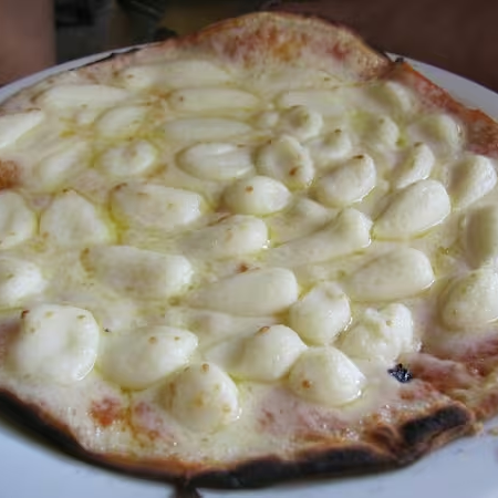 Muçarela, Banana, Açúcar, Canela e Creme de Leite.