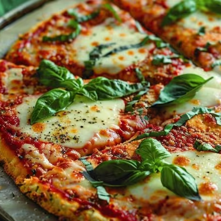 Molho, Muçarela, Tomate, Manjericão, Azeitona e Orégano.