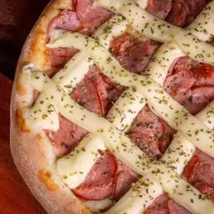Molho, Muçarela, Presunto, Calabresa, Creme de Leite, Tomate e Orégano.