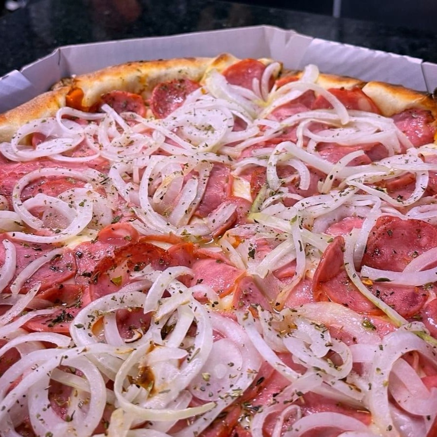 Massa italiana, molho especial, mussarela, calabresa, cebola e orégano!