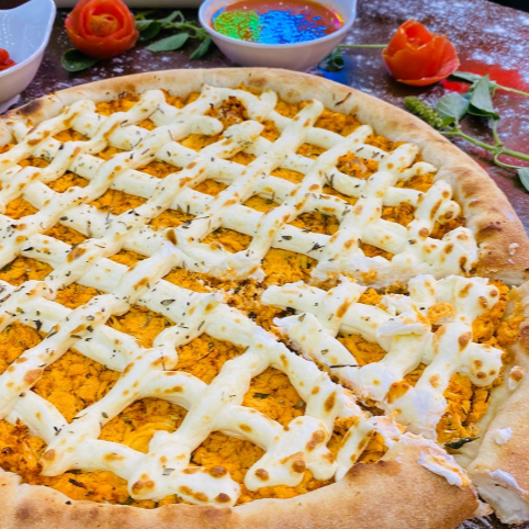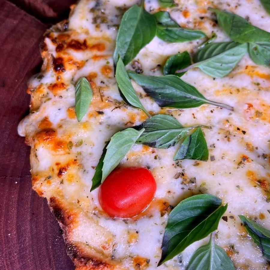 Massa italiana, molho especial, mussarela, frango desfiado, Catupiry e orégano!