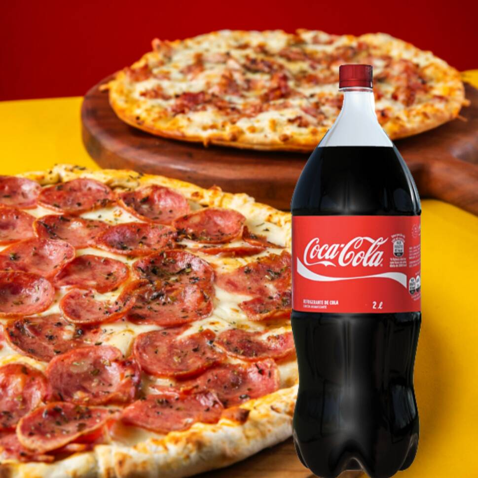 2 PIZZAS GRANDE 8 PEDAÇOS MAIS 1 COCA COLA 2L