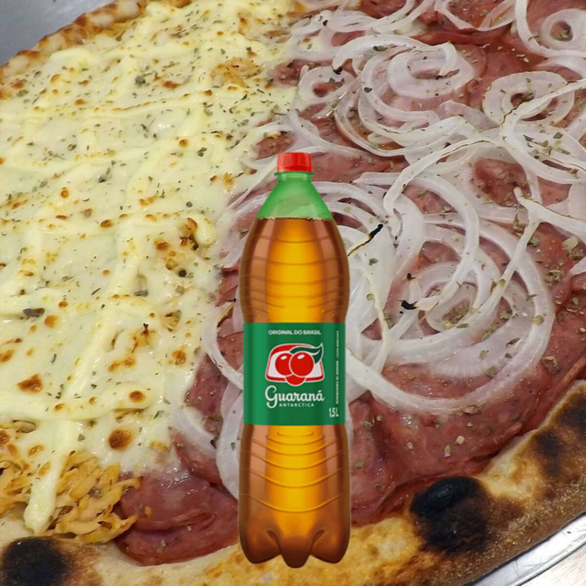 Combo Metade Calabresa, Metade Frango + Guarana 1,5l (grátis)