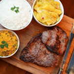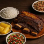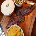 Cupim assado na brasa (Serve 2 pessoas) Acompanha arroz branco soltinho, feijão tropeiro com bacon, mandioca cozida e salada. Não realizamos trocas de acompanhamentos. Imagem meramente ilustrativa