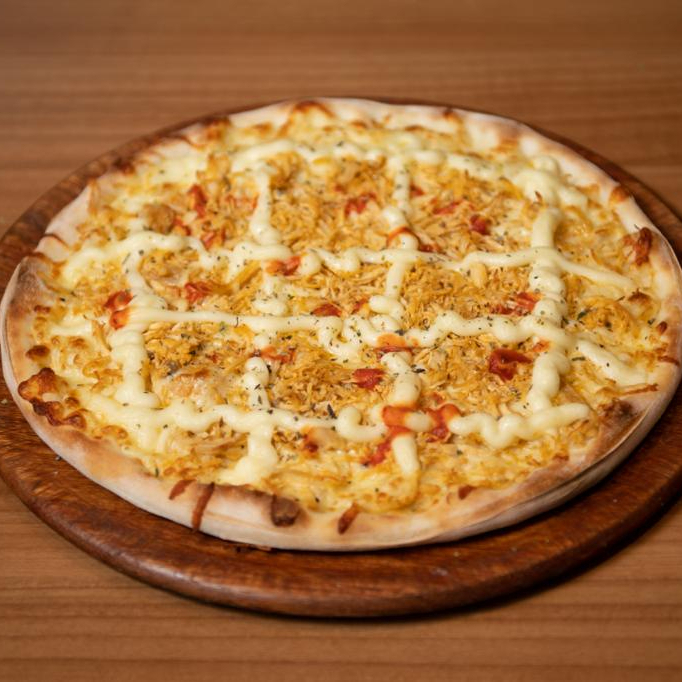 Molho de tomate, mussarela, frango desfiado, catupiry e orégano