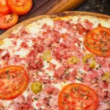 Molho de tomate, mussarela, calabresa, cebola e orégano