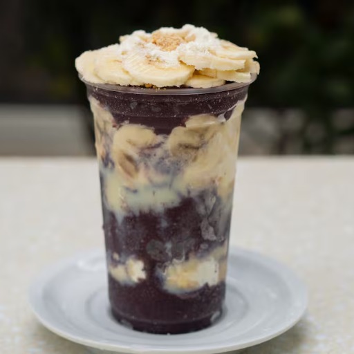 completo: Banana Leite em pó,Leite Condensado,Paçoca e uma bola de sorvete sabor ( Leitissimo)