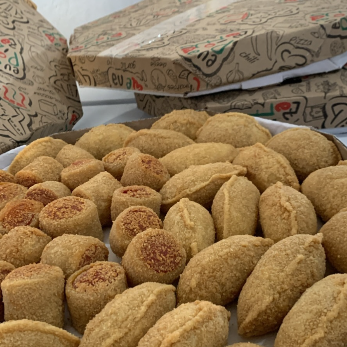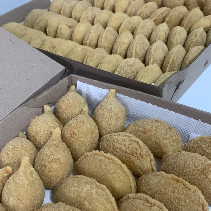 Pequeno Frito, escolha seus preferidos: Coxinha de frango com catupiry/frango com cheddar, Risole carne com catupiry/Frango com catupiry/presunto e queijo, enroladinho de salsicha.