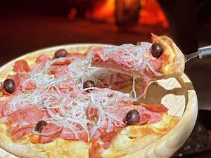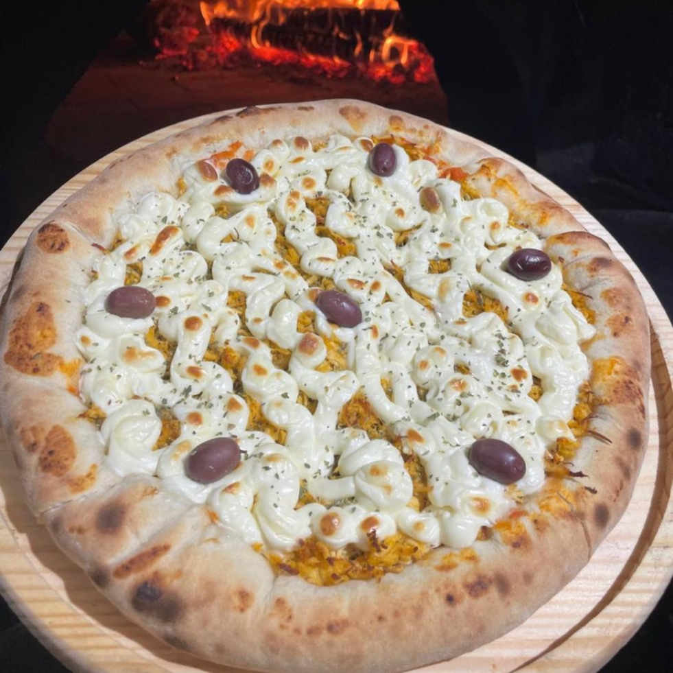 Massa fresca, molho artesanal, mussarela, calabresa e cebola