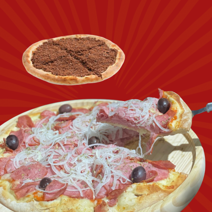Pizza de Calabresa + Pizza Brotinho de Brigadeiro.