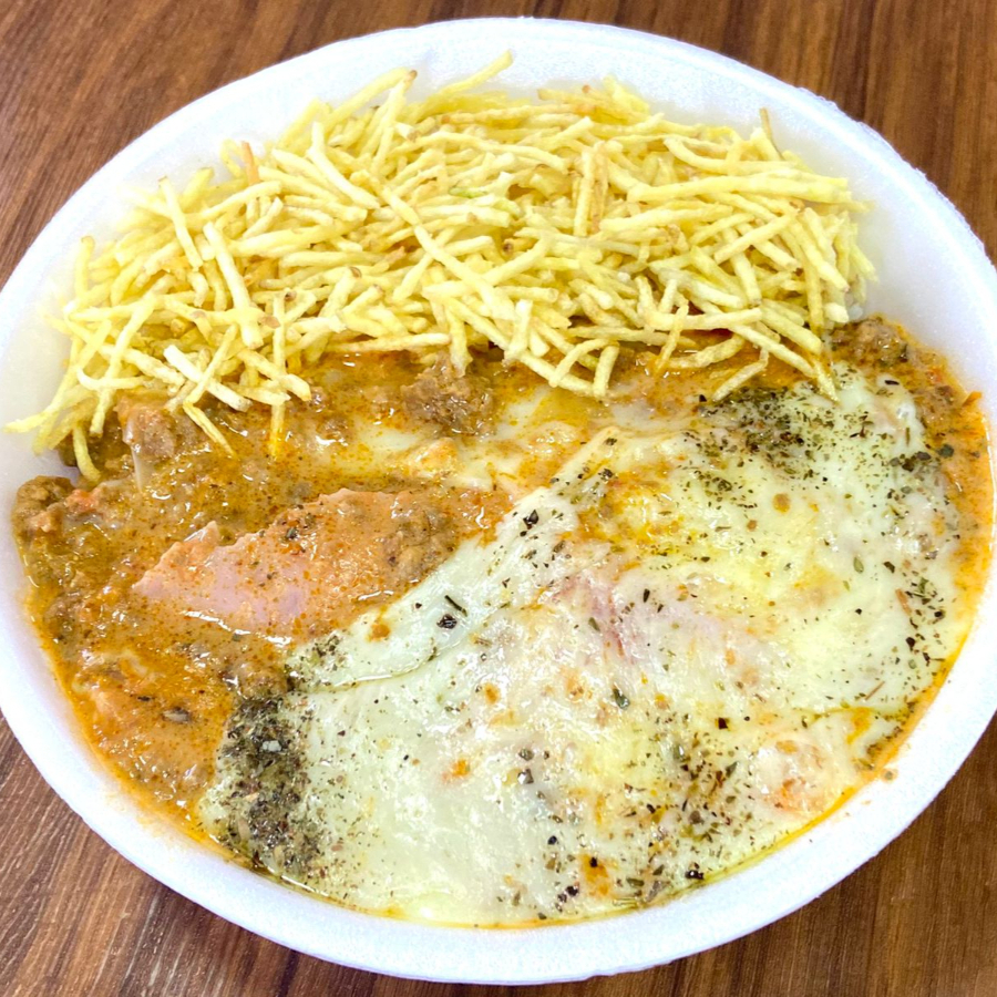 Arroz, Batata Palha e Lasanha Bolonhesa