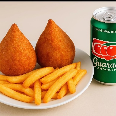 ESSE DELICIOSO COMBO ACOMPANHA 2 COXINHA DE FRANGO CREMOSO+1 GUARANÁ ANTÁRTICA 269ML+BATATA FRITA.