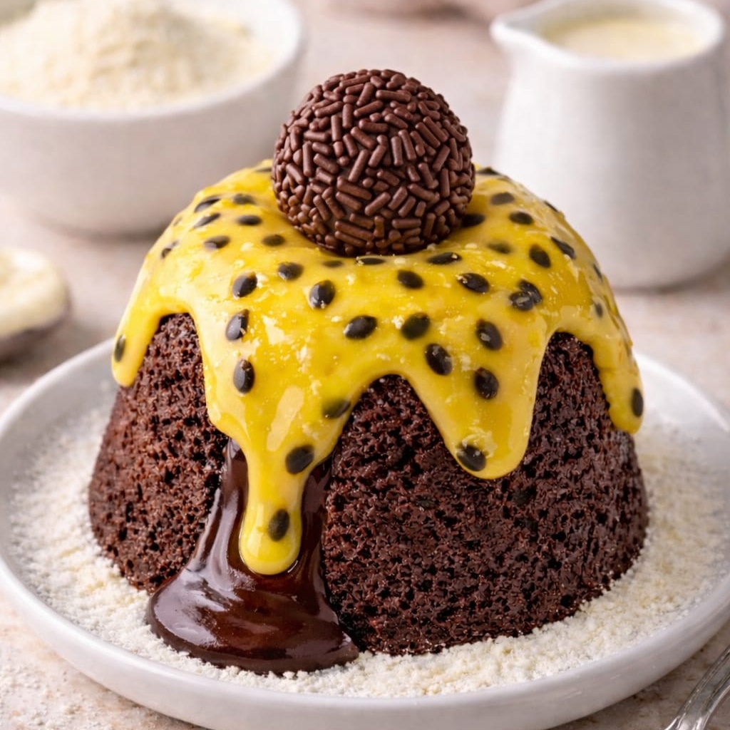 Mini Bolo De Chocolate Com Cobertura De Maracujá