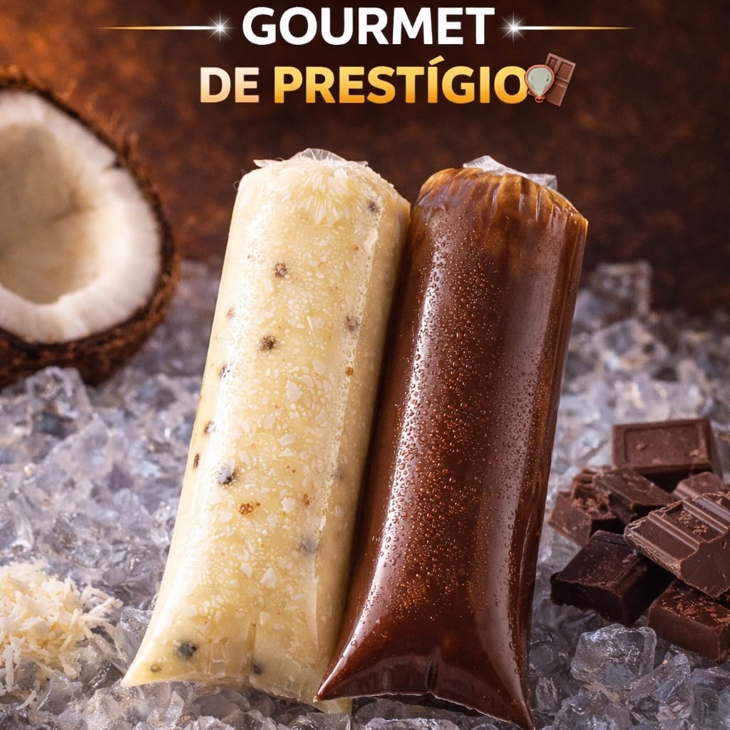 Geladinho gourmet Prestígio, feito com base cozida super cremosa, preparado com coco e coberto com chocolate premium, formando uma casquinha deliciosa por fora e um recheio cremoso por dentro. Refrescante, saboroso e irresistível! ️