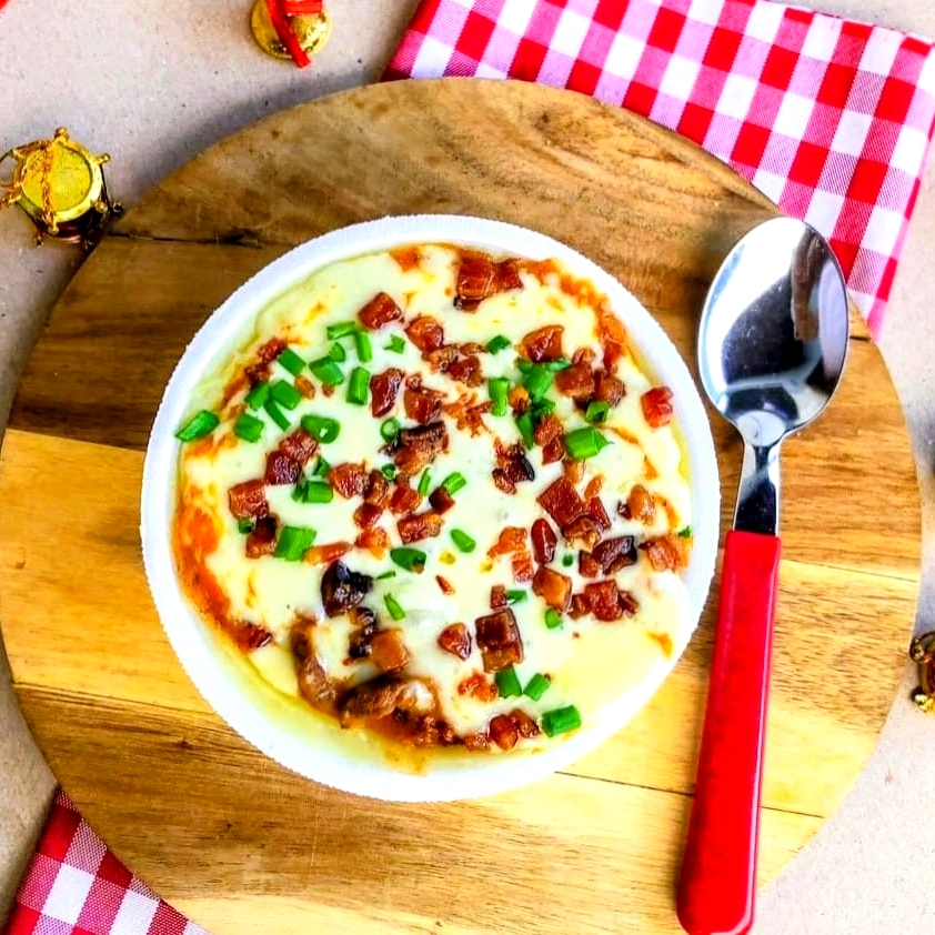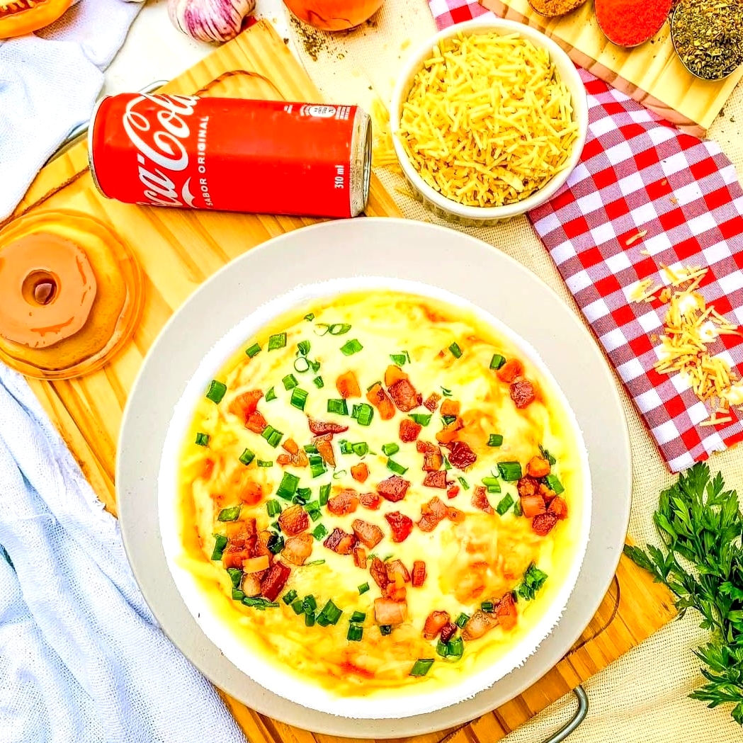 Carne de sol ao nosso famoso molho branco artesanal,servido na batata cozida, queijo mussarela derretido, bacon em cubos e cebolinha por cima .
