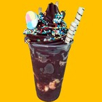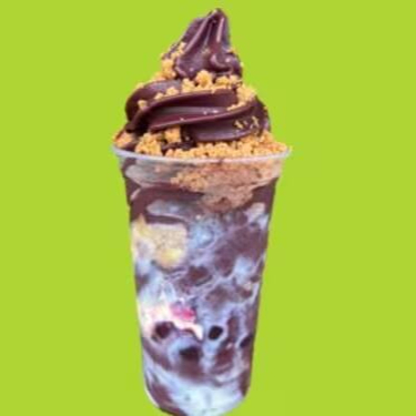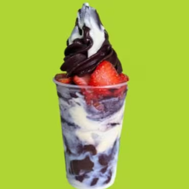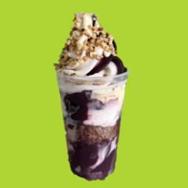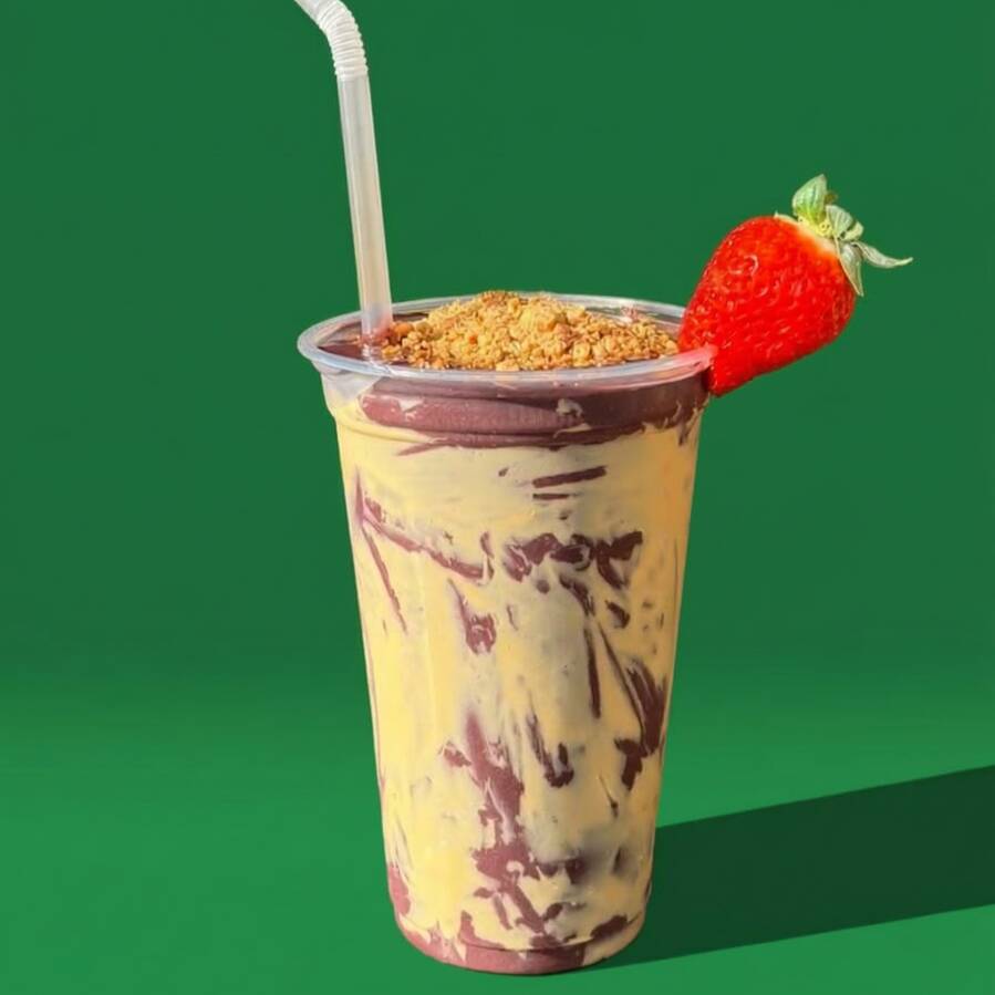 Cereja, paçoca, banana, morango, leite em pó, Ovomaltine e calda de leite condensado