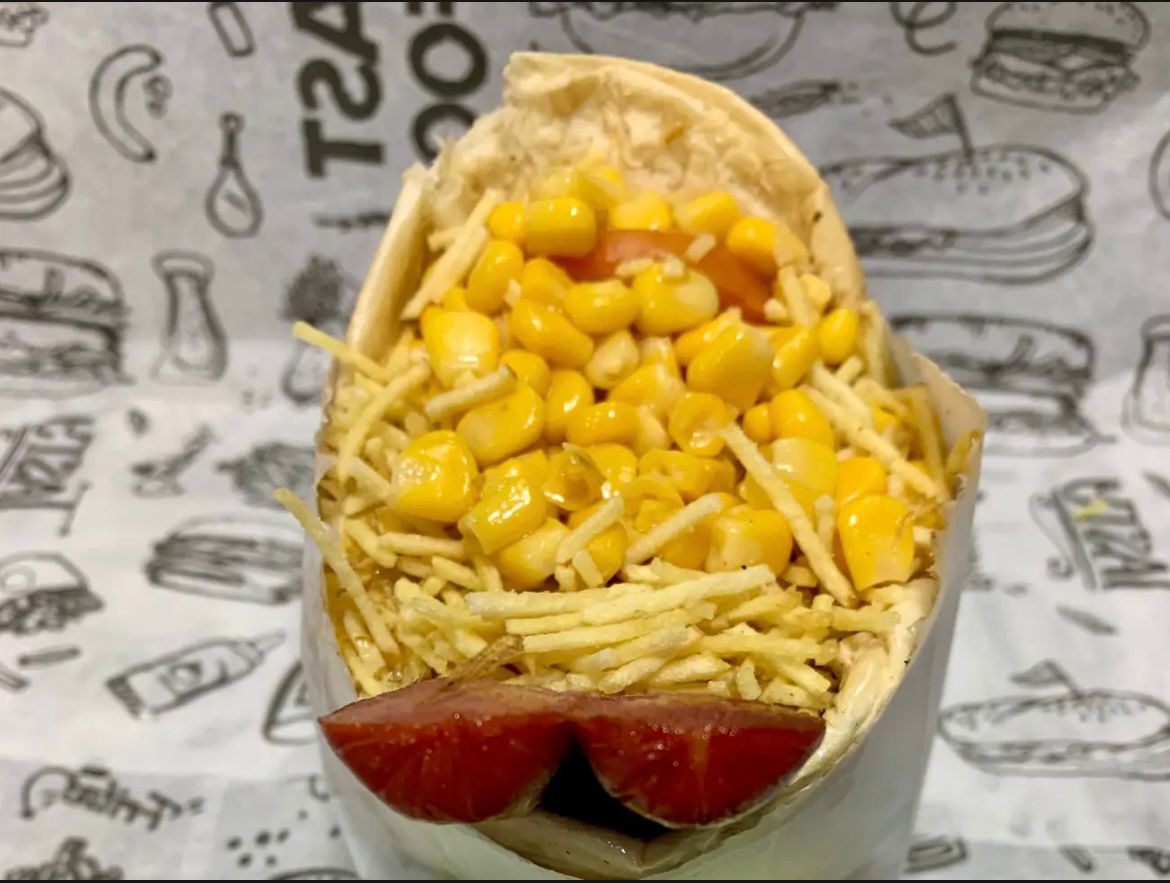 Pão, Ovo, Salsicha, Mussarela, Alface, Tomate, Milho e Batata Palha