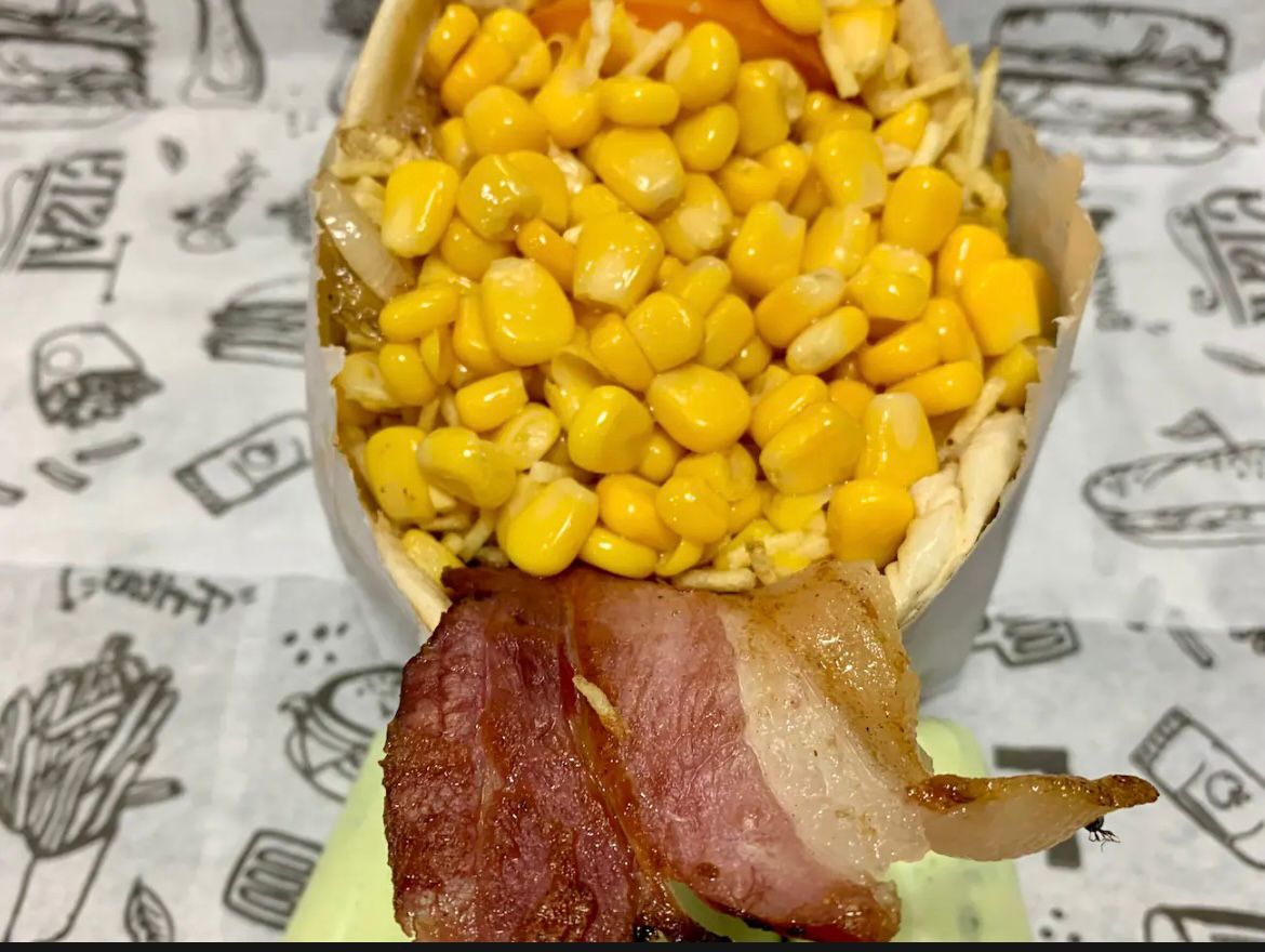 Pão, Bacon, Mussarela, Alface, Tomate, Milho e Batata Palha
