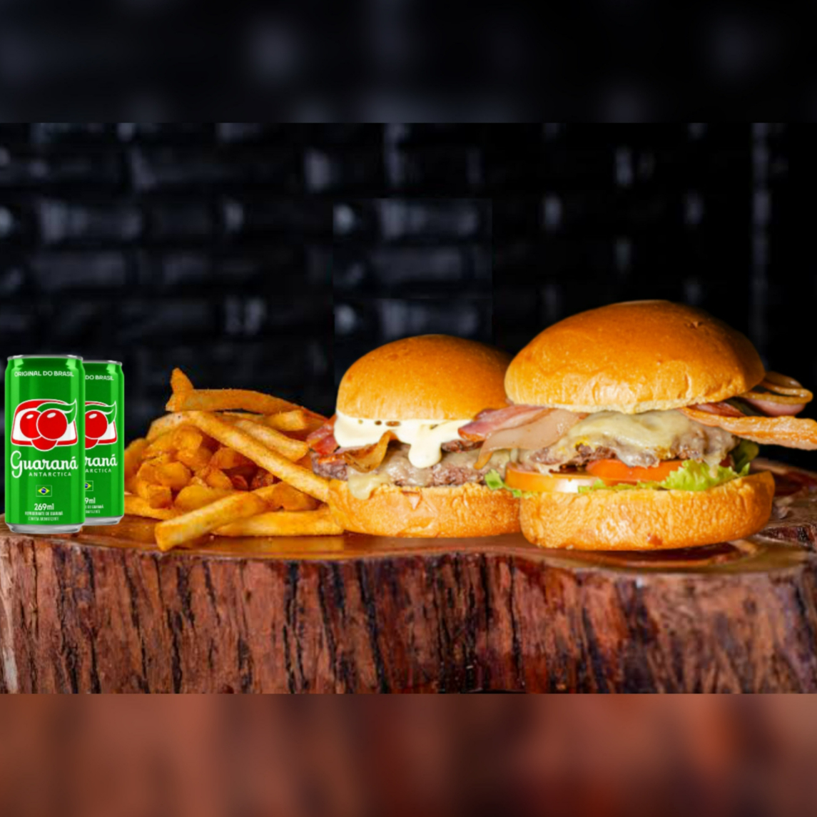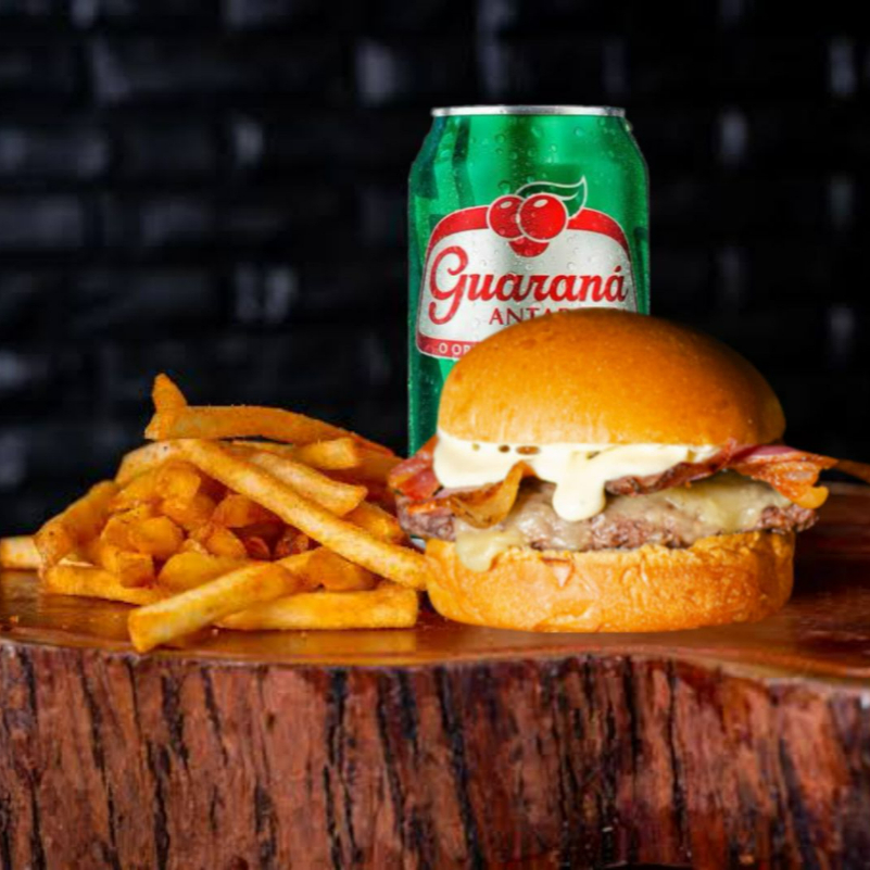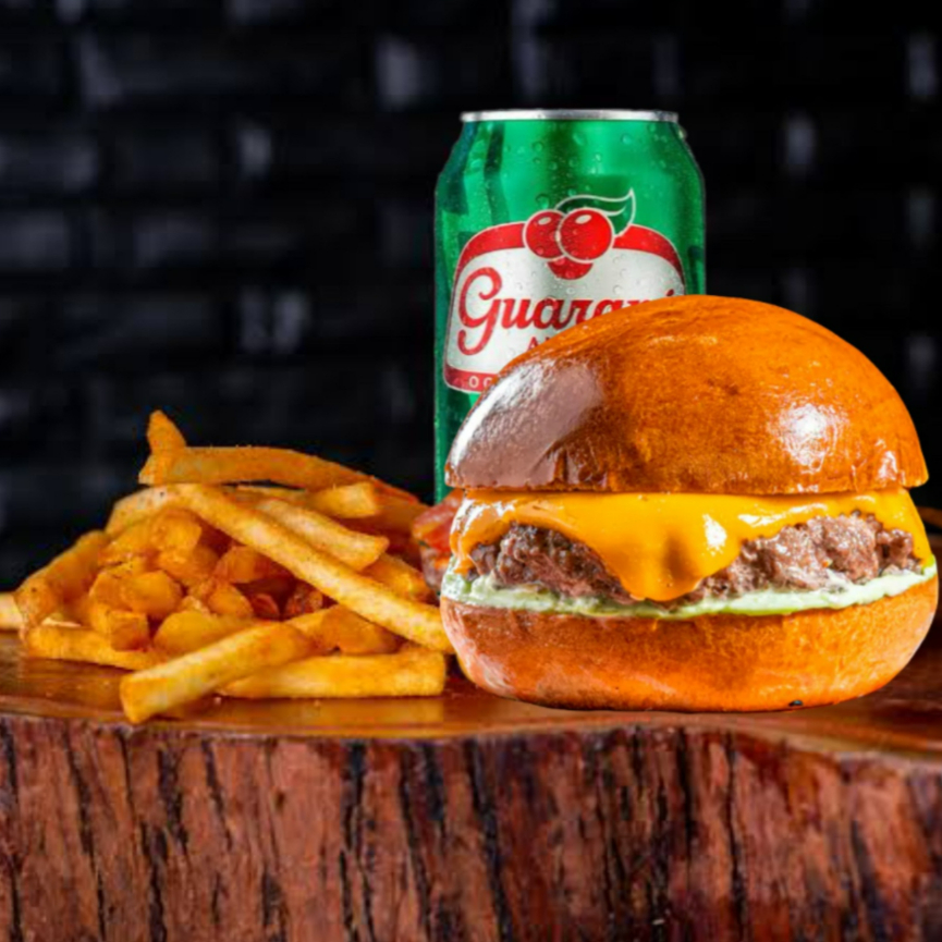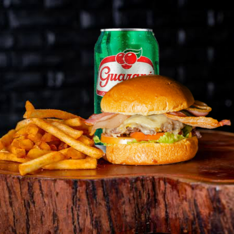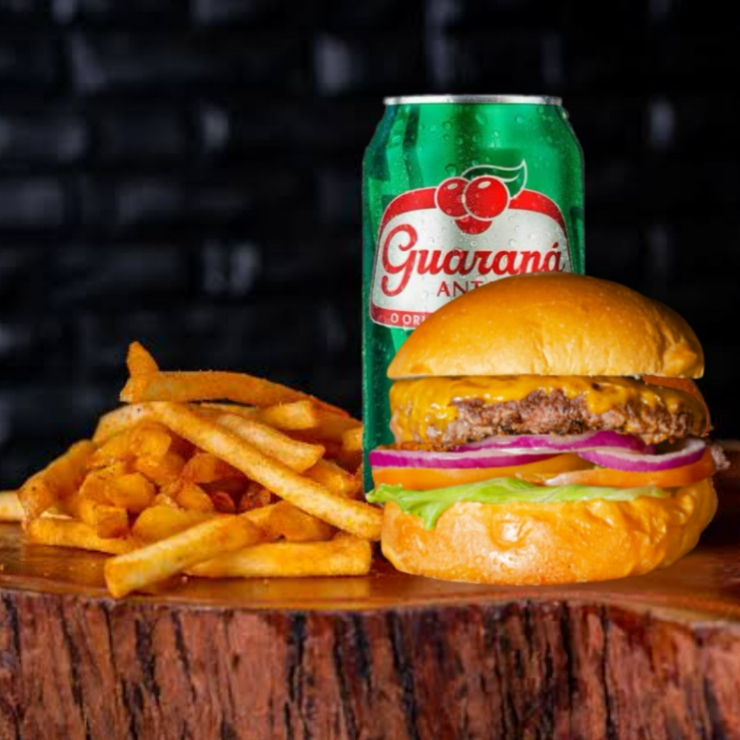 hamburguer, batata, guarana antartica