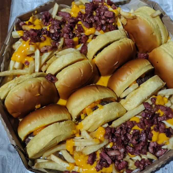 PAO HAMBURGER 100 G BACON SALSICHA OVO MUSSARELA BATATA PALHA E MILHO