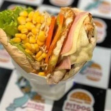 Pão , 2 frango , 2 mussarela , 2 presunto, 2 bacon, 2 ovo, 2 salsicha , alface, tomate , milho e batata.