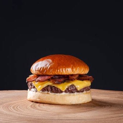 Pão gourmet , hamburguer , cheddar , 2 bacon , alface , tomate , cebola roxa.