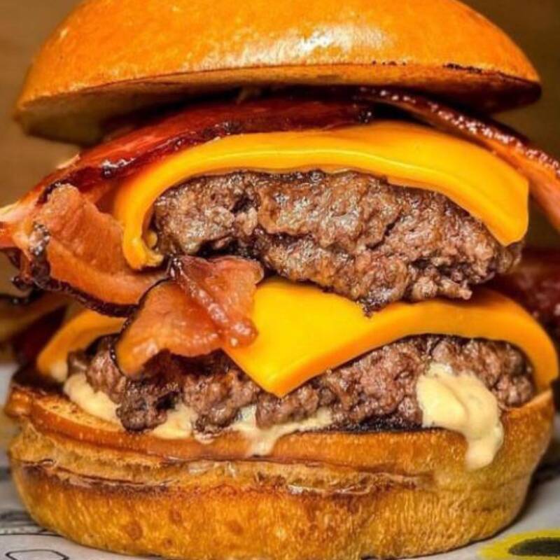 Duplique o prazer com nosso hambúrguer: dois suculentos hambúrgueres bovinos de 140g, bacon crocante, queijo cheddar duplo e molho especial, entre pães de brioche. É a celebração definitiva do sabor para os verdadeiros amantes de hambúrguer.