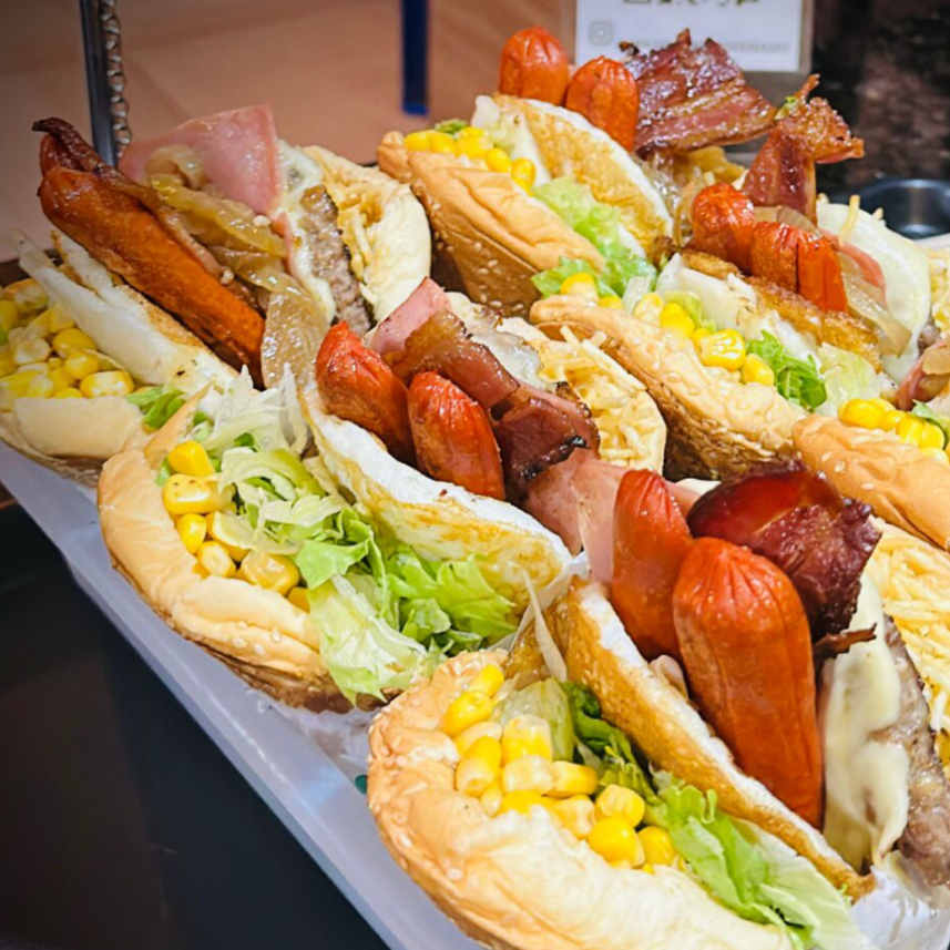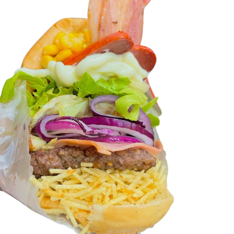 Hambúrguer suculento, queijo derretido, bacon crocante, ovo dourado, salsicha, alface, tomate, milho e batata palha. Uma explosão de sabores em cada mordida. Peça agora e renda-se ao prazer gastronômico!