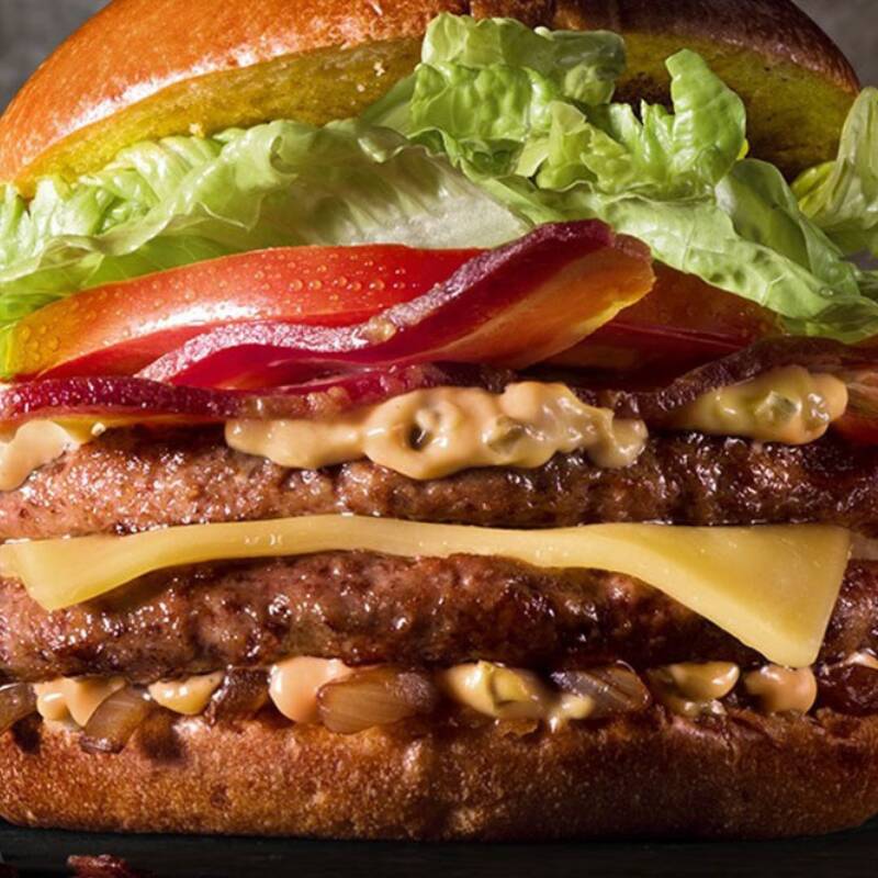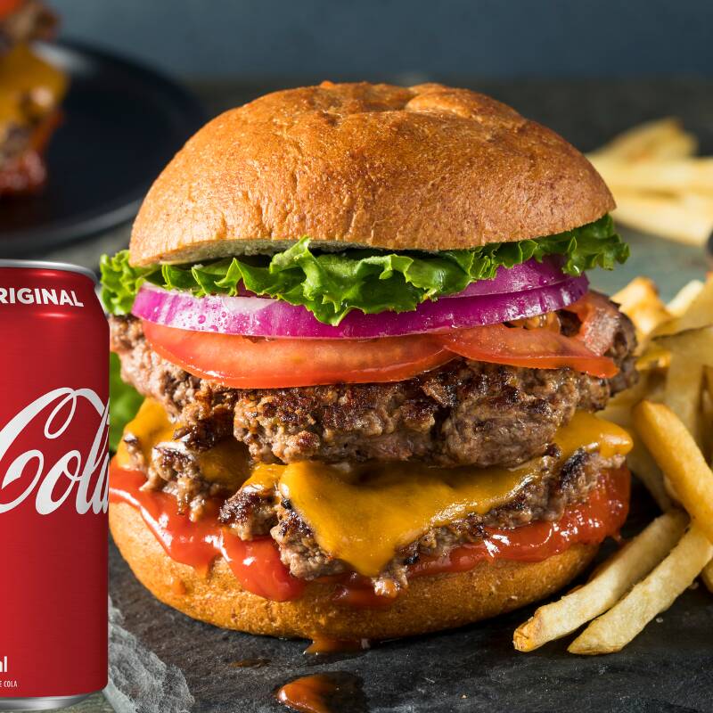 Mergulhe em uma explosão de sabores com dois hambúrgueres de 140g, cheddar duplo e bacon, entre pães de gergelim. Tomate fresco, alface e molho Supreme à base de barbecue completam esta obra-prima culinária. A combinação perfeita para uma fome voraz.