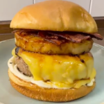 Carne suculenta de 140g, bacon crocante, provolone derretido e abacaxi grelhado com mel no pão brioche.