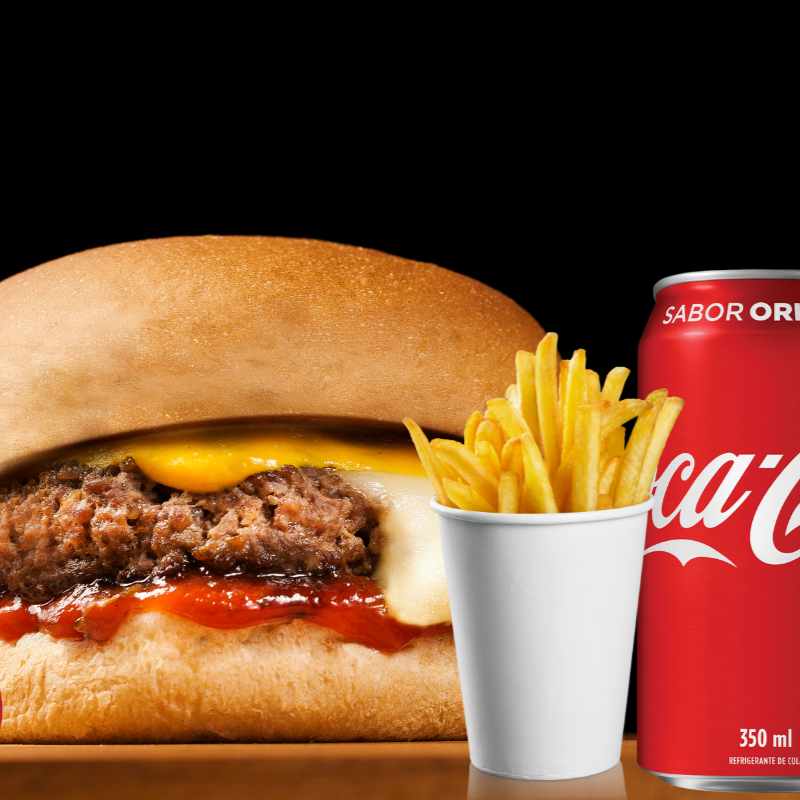 Hambúrguer suculento com queijo, batatas crocantes e suco natural de 500ml à sua escolha. Uma refeição deliciosa e completa para qualquer momento!