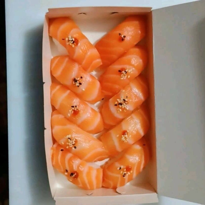 Fatias frescas e generosas do melhor salmão, cortadas na medida certa pra você sentir a textura suave e o sabor puro do peixe.
