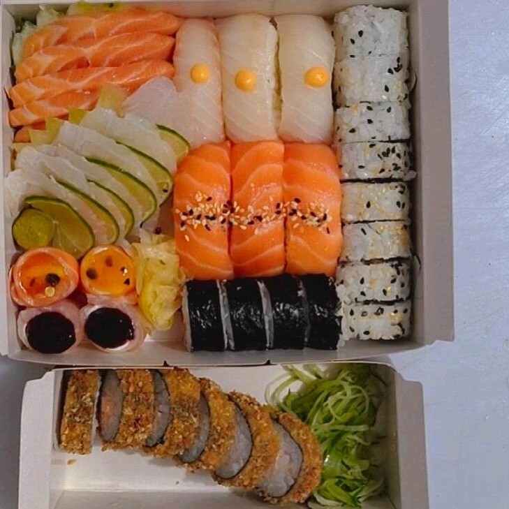 Perfeito pra juntar a galera.Variedade, sabor e tradição em cada mordida — da comida japonesa num só combo.14 Uramaki12 Hot Philadelphia12 Niguiris10 Sashimis de salmão10 Sashimis de tilápia8 Gunkan8 Hossomaki6 Camarões empanados *combo acompanha 4 molhos shoyu, e 4 molhos taré