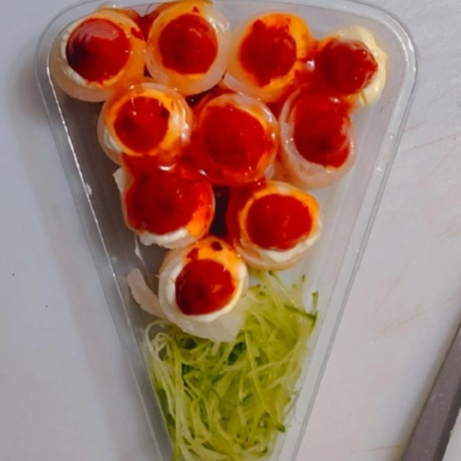 Delicadas fatias de tilápia fresca, envolto de puro cream cheese com um toque leve de pimenta por cima, pra quem curte sabor leve e textura marcante.