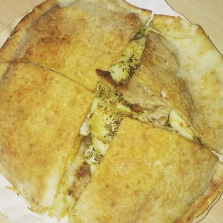 Pão sírio, filé de frango, muçarela, oregano, tomate, alface e milho.