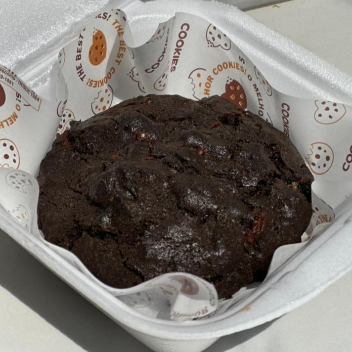 Cookie dark chocolate feito com cacau 100% e cacau black e chocolate blend , crocante por fora e macio por dentro, ele e perfeito ideal para quem não quer algo tão doce! peso aprox.100g