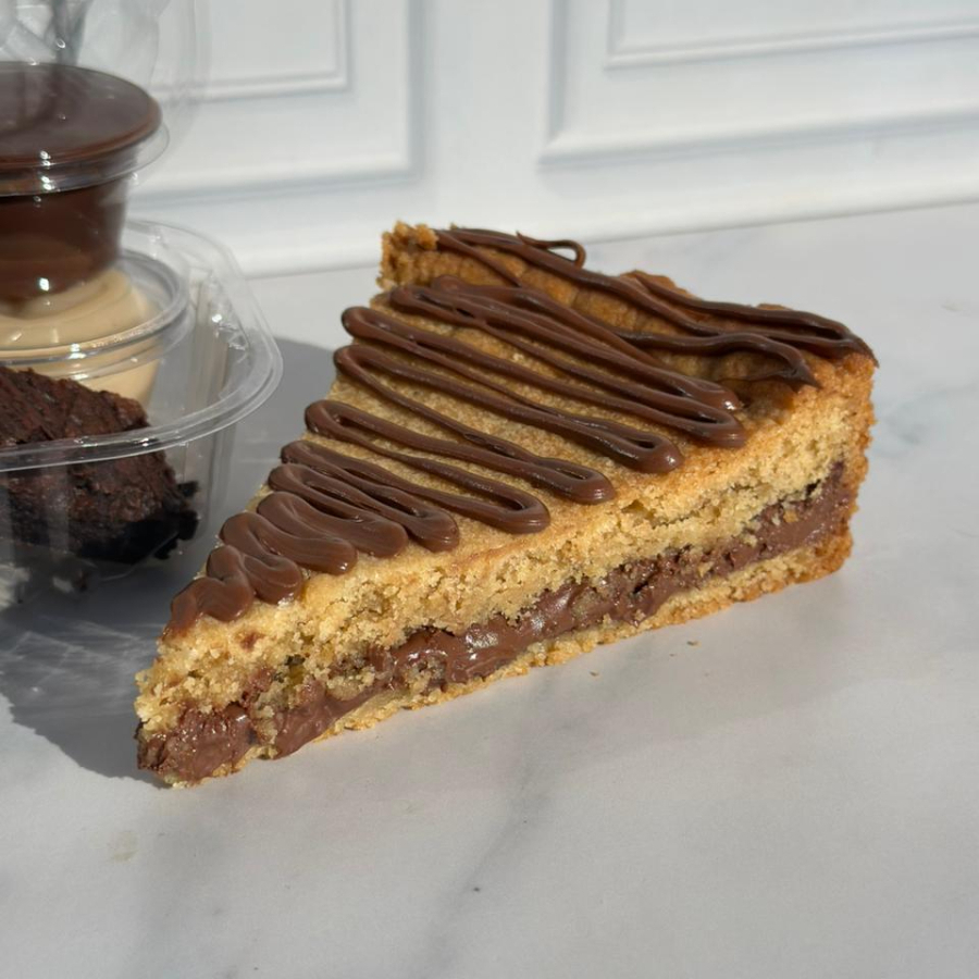 A queridinha fatia de torta cookie com Nutella pura agora em dose dupla de oferta , leve 2 fatias de torta cookie com Nutella pura com desconto especial, não perca essa delicia ! Peça agora ! Peso aprox.360g